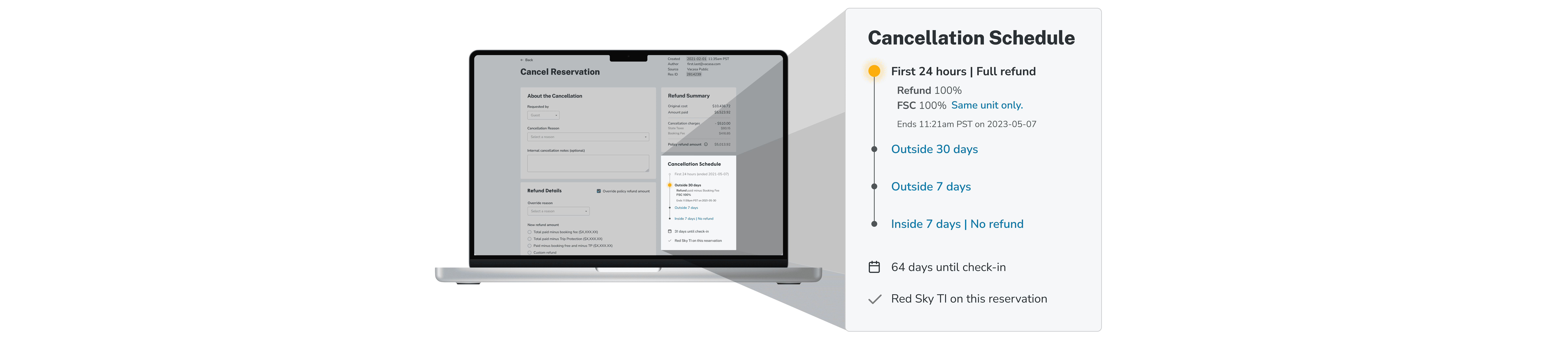 As a vacation rental management company, Vacasa lists units across many popular sites like AirBnB and Vrbo. Cancellation policy on each of these sites can be vastly different. When a guest would call Vacasa to cancel, it was confusing for customer service agents to know the refund eligibility. I was tasked with building a tool that quickly made that clear and was the sole Product Designer on this project.