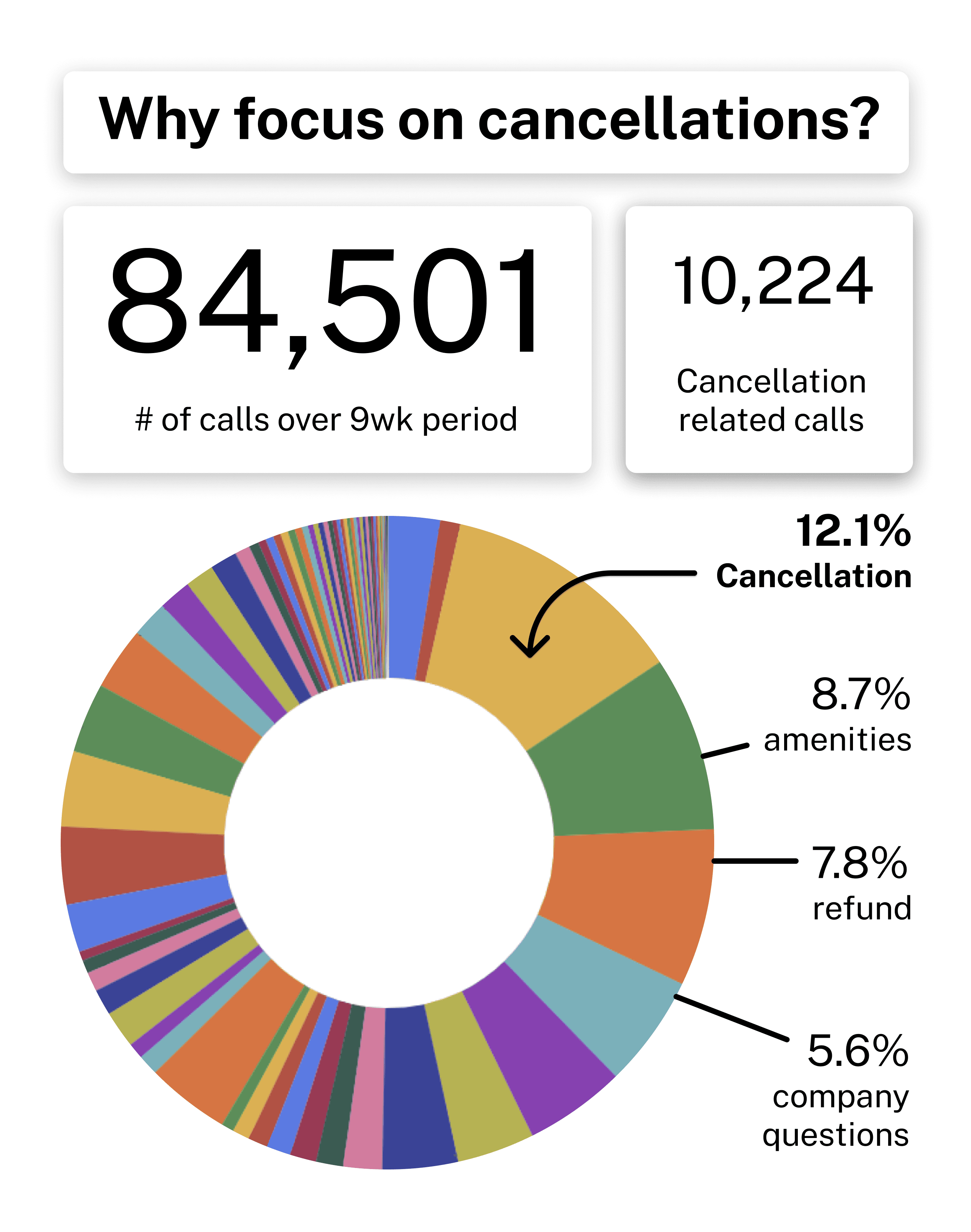 My PM and I hypothesized that if our cancellation tool provided agents the right information at the right moment, then call times related to cancellation would be shortened. We deemed this our primary success indicator, which proved to be true: