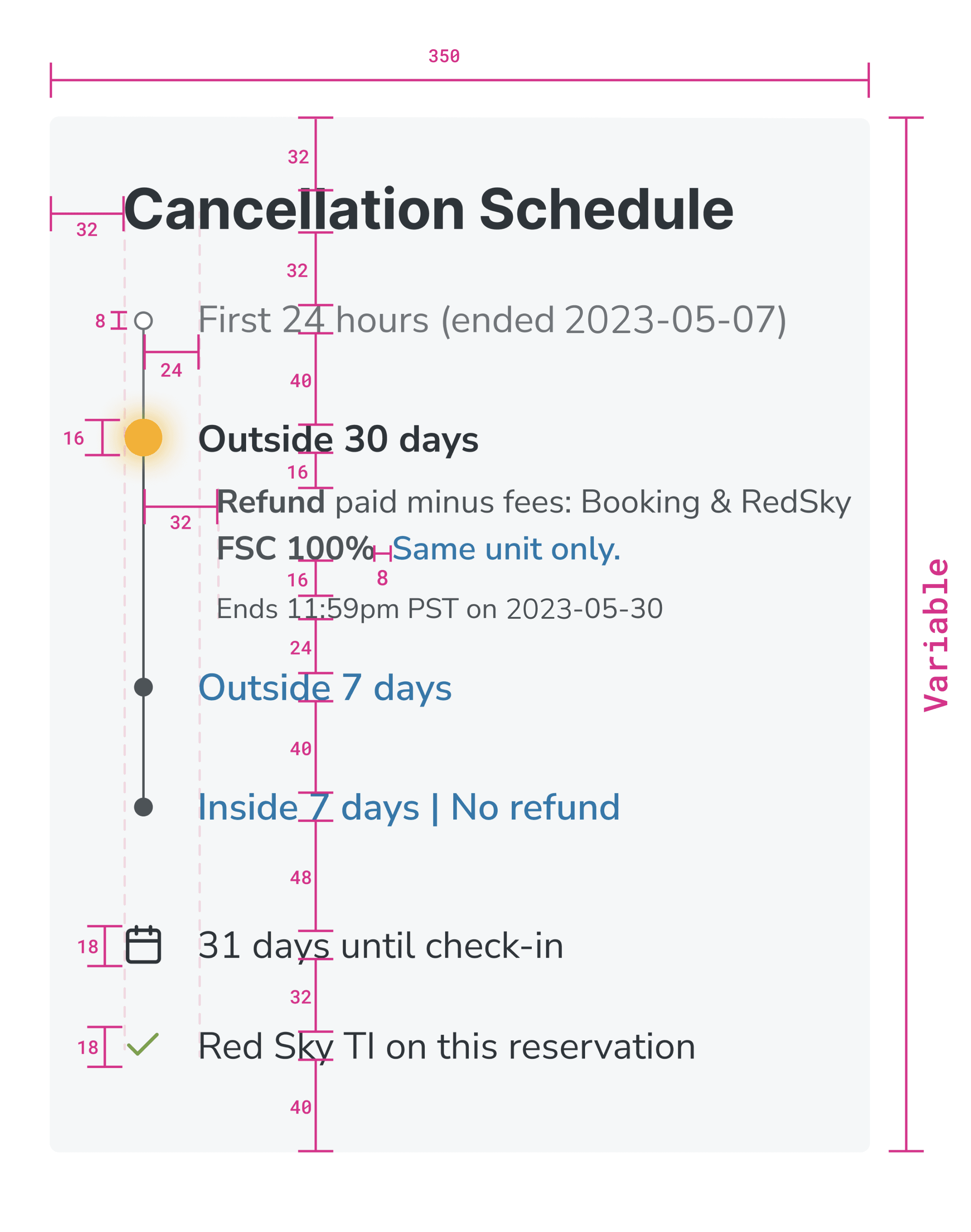 First, I documented the different cancellation policies for each channel. Then, I identified the most extreme examples of each to develop layouts that worked for all scenarios. Working with my PM and engineering partners, I verified feasibility prior to testing.